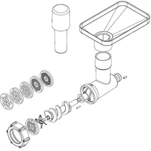 Die hohe Leistungsfähigkeit der KOHLER Küchenmaschinen erlaubt es, den Fleischwolf im Dauerbetrieb zu verwenden. Zum Anschluss des Fleischwolfs wird das Zwischengetriebe benötigt.