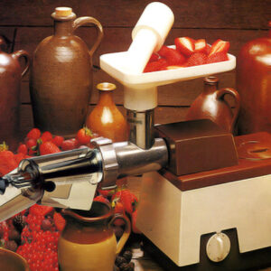 Der Fruchtpressenvorsatz ermöglicht die mühelose, appetitliche und rasche Verarbeitung von Beerenobst aller Arten, insbesondere zur Herstellung von Marmeladen und Gelees.