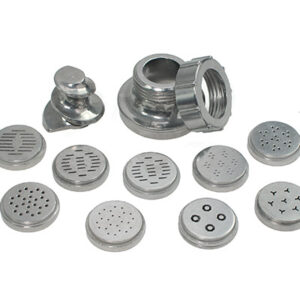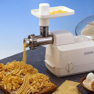 Mit dem Nudelvorsatz wird die Zubereitung echter Hausmacher-Nudeln zu einer einfachen Sache. Neun Einsatzscheiben stehen für die bequeme Herstellung von breiten und schmalen Bandnudeln, Suppennudeln, Spaghetti, Makkaroni und „Hörnchen“ zur Verfügung.