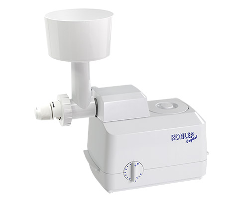 Die KOHLER Getreidemühle mahlt neben Getreide auch Kräuter und Gewürze. Sie verfügt über ein Stahlkegelmahlwerk mit stufenloser Feinheitsgradeinstellung. Der Feinheitsgrad kann während des Mahlvorgangs verändert werden und bleibt ohne zusätzliche Verriegelung absolut konstant.