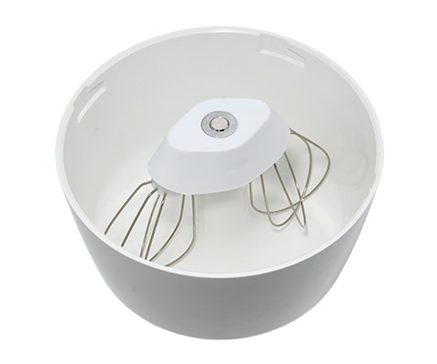 Die Doppelrührbesen sind für leichte Kuchenteige, Kartoffelbrei, Quarkspeisen, Sahne, Eischnee, usw. geeignet. Kleinste Mengen werden erfasst, da die Rührbesen ganz unten in der Schüssel rühren.